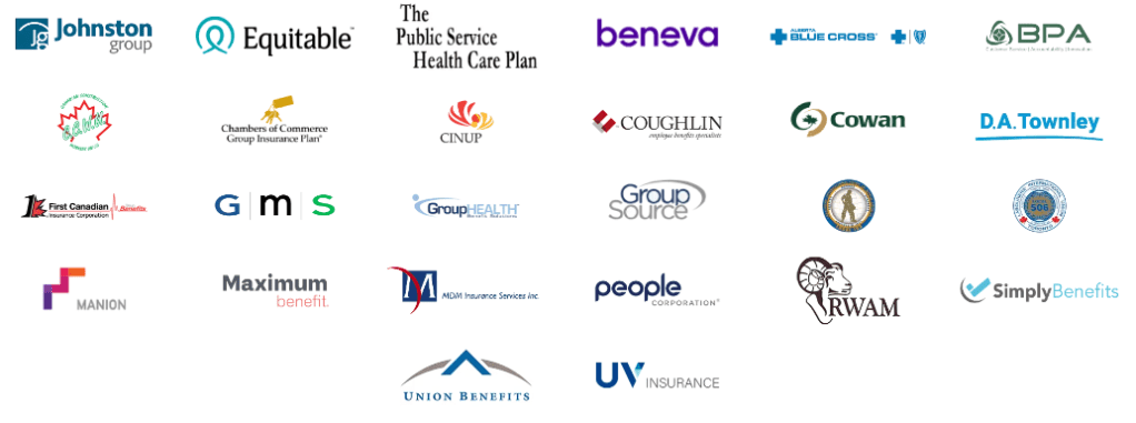 Direct billing: Patients must pay me up front but I can submit the claim for you, and then you will be reimbursed by your insurer. Please be mindful that insurance companies will not disclose to a clinician your coverage so you should contact them to know your caps, restrictions, and if you need a written doctor’s referral or preauthorization before you book in for treatment (nothing worse than finding that out in hindsight!). I can submit to the companies listed below on your behalf: